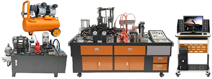 液壓與氣動(dòng)綜合實(shí)訓(xùn)平臺(tái)主要由實(shí)訓(xùn)平臺(tái)、液壓元件模塊、疊加閥實(shí)訓(xùn)模塊、氣動(dòng)元件模塊、電氣控制模塊、液壓與氣動(dòng)仿真軟件、測(cè)控儀表、裝調(diào)工具、實(shí)訓(xùn)配件、電腦桌等組成。